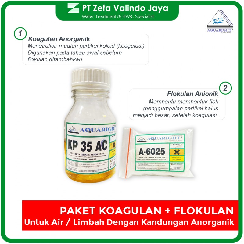 AQUARIGHT KP35AC is a liquid chemical coagulant based on Polyaluminium Chloride (PAC) that functions to clarify water by coagulating fine particles so that they can settle or be removed.